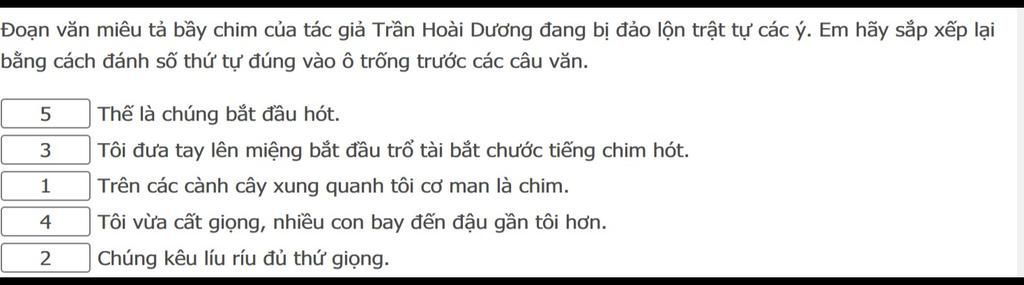 5.Tôi vừa cất giọng.nhiều con chim đến lại gần tôi hơn.