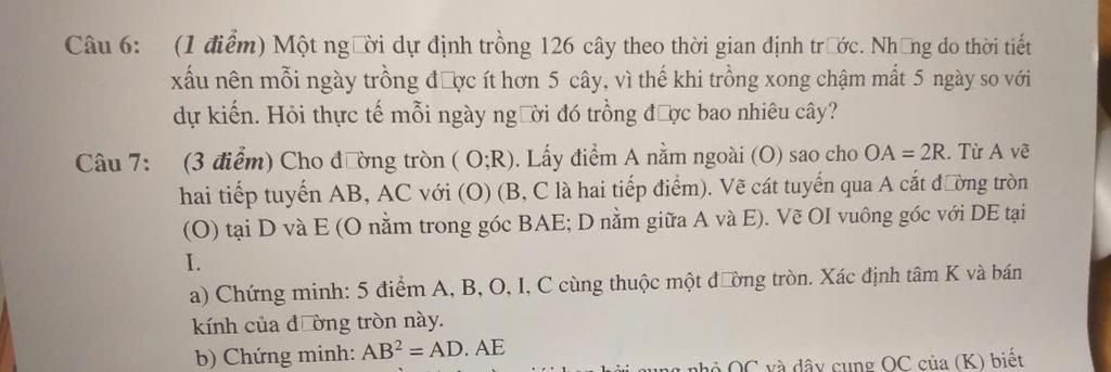 (1 điểm) Một người dự định trồng 126 cây theo thời gian định trước. Những do thời tiết