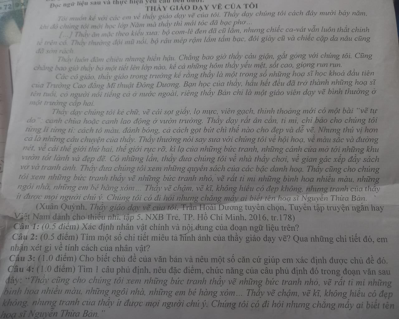 `-` Nhân vật chính: thầy giáo dạy vẽ`-` Nguyễn Thừa Bản