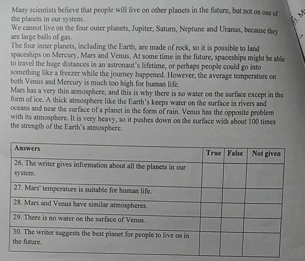 `->` Đoạn văn chỉ nói về các hành tinh trong hệ Mặt Trời nhưng không đề cập đến tất cả (không nhắc đến Sao Thủy)