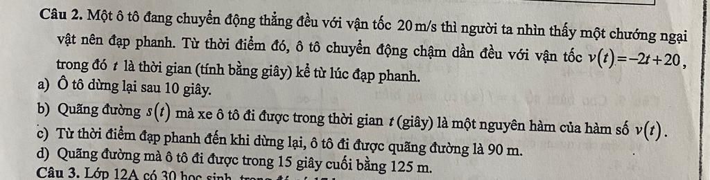 `s(t) = ∫v(t) dt = ∫(-2t + 20) dt = -t² + 20t + C` (C là hằng số tích phân)