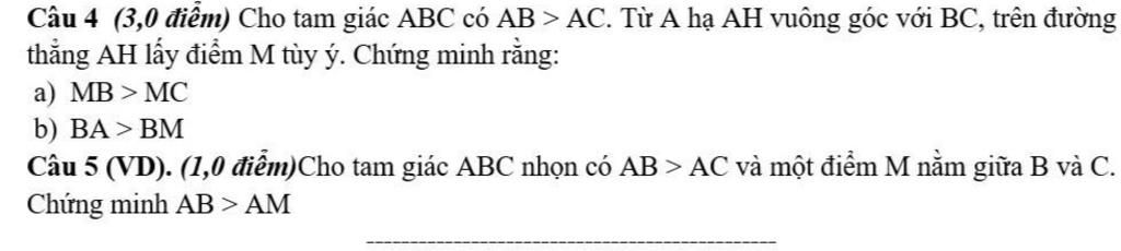 Câu 5 (VD). (1,0 điểm)Cho tam giác ABC nhọn có AB > AC và một điểm M nằm giữa B và C.