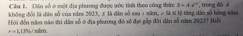 Vì dân số tại địa phương `(S)` sẽ đạt gấp đôi `-> (S)=2(A)`