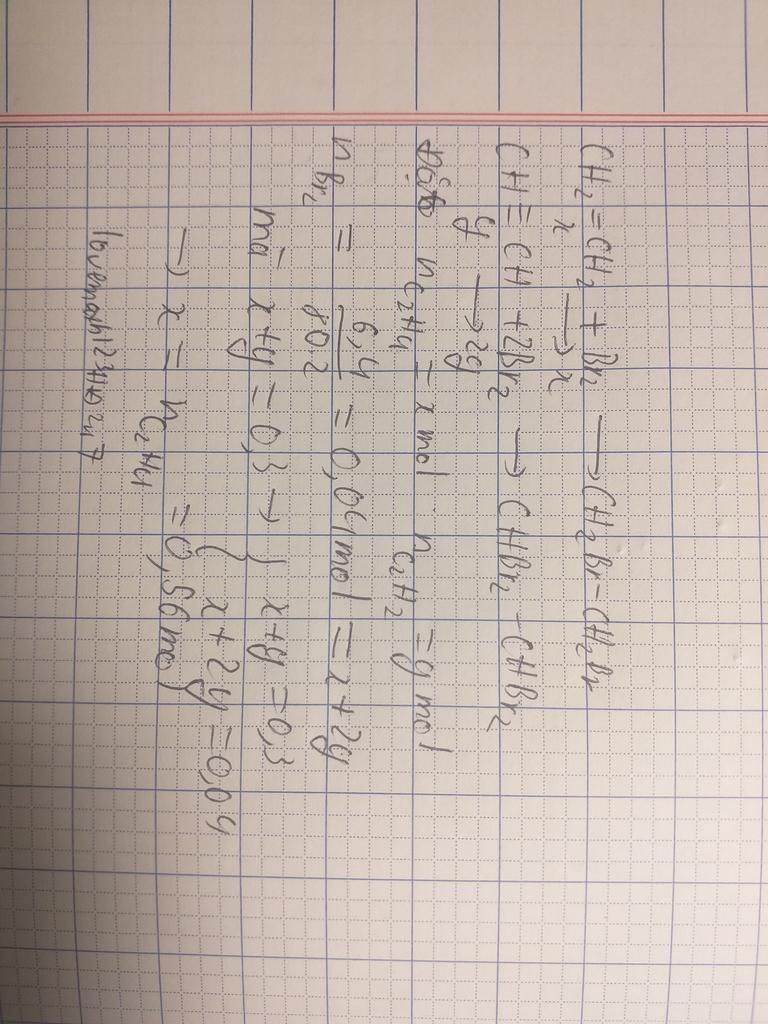 Cho 0,3 mol hỗn hợp gồm ethylene và acetylene qua dung dịch bromine dư để phản ứng sảy ra hoàn toàn, lượng bromine phản ứng là 6,4 gam. Số mol của ethylene trong 0,3 mol hỗn hợp là?