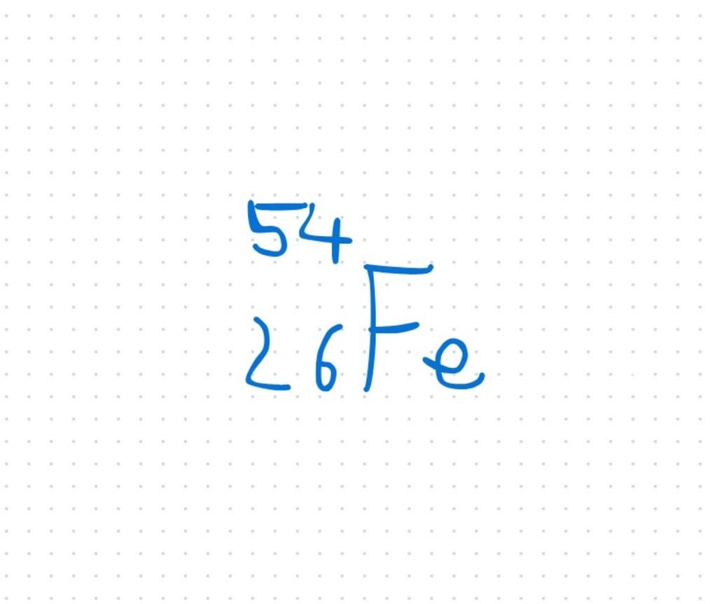 54 là số khối, hay tổng số neutron và proton (26 + 28 = 54).