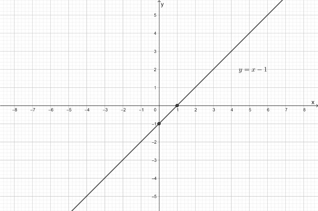 Vẽ đường thẳng đi qua hai điểm trên ta có đồ thị hàm số $y=x-1$