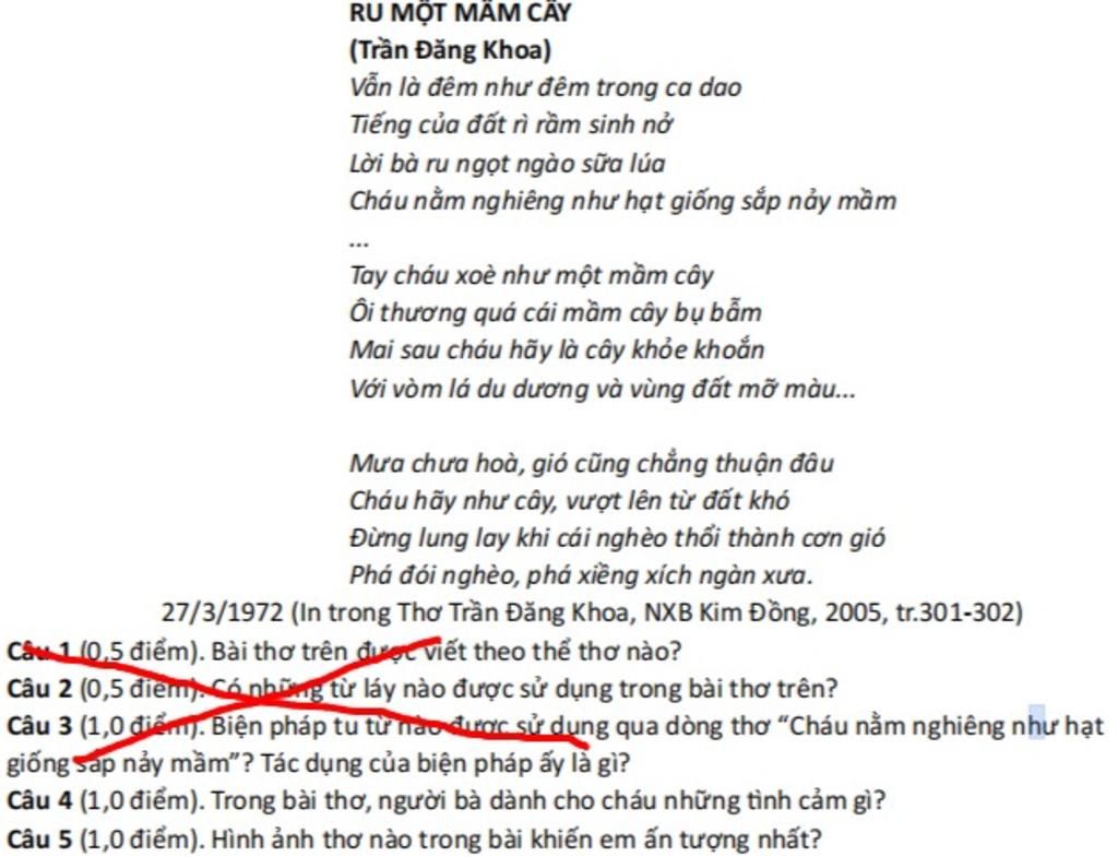 `-` Trong bài thơ "Ru một mầm cây" người bà đã thể hiện tình yêu thương sâu sắc, bao la đối với cháu qua từng lời ru, từng hình ảnh mộc mạc, gần gũi. Mong cháu mai sau trưởng thành khỏe mạnh, nên người và mong cho cháu có thể chống chọi và vượt qua những khó khăn trong tương lai. Không chỉ yêu thương, bà còn dành cho cháu niềm hy vọng lớn lao. Bà mong cháu sẽ lớn lên khỏe mạnh, trở thành một "cây khỏe khoắn" với vòm lá xanh tươi và đâm rễ sâu vào "vùng đất mở màu".Tình yêu thương của bà không chỉ dừng lại ở sự chăm chút hiện tại mà còn là lời động viên, khích lệ cháu đối mặt với khó khăn: "Cháu hãy như cây, vượt lên từ đất khó".
