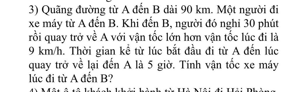 Vận tốc xe máy đi từ B đến A là: `x + 9` (km/h).
