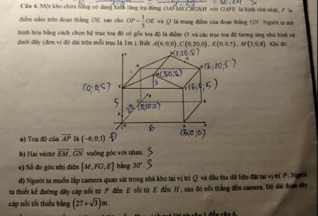 Câu 4. Một kho chứa hàng có dạng hình lăng trụ đứng ĐIỂMẸ CÔ GNH với OAFE là hình chữ nhật, P. là