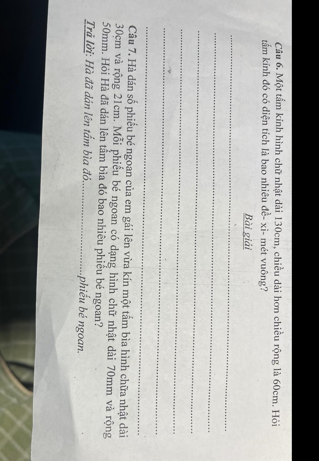 Diện tích mỗi phiếu bé ngoan là :