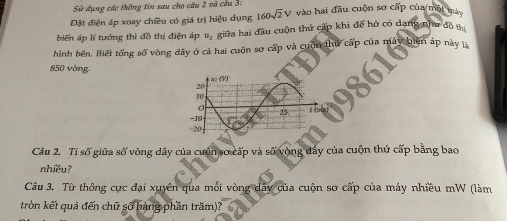 biến áp lí tưởng thì đồ thị điện áp u, giữa hai đầu cuộn thứ cấp khi để hở có dạng