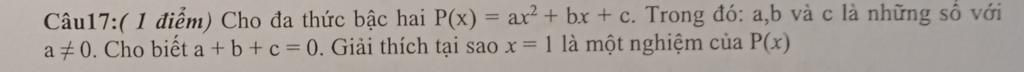 Vì ta có : `P(1)=a*1^2+b*1+c=a+b+c=0`