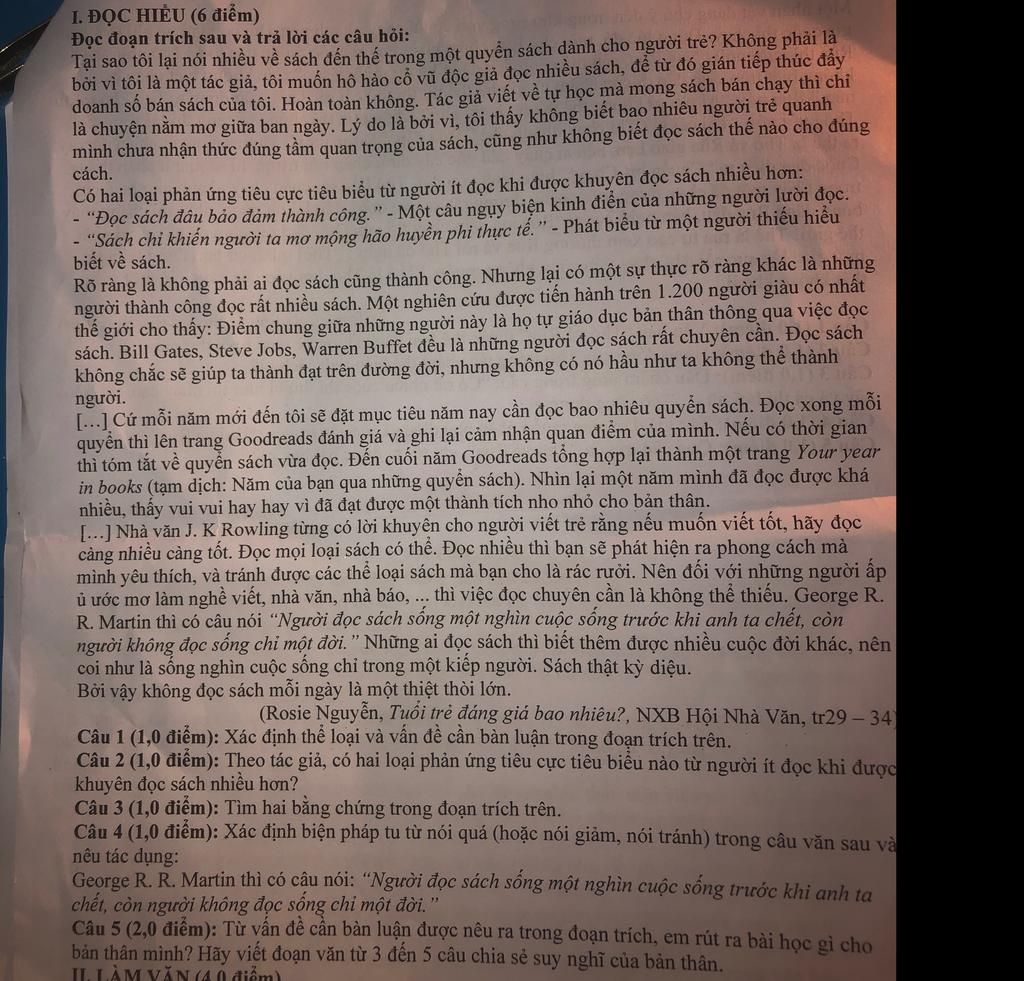 `-` VĐNL: Tầm quan trọng của việc đọc sách đối với người trẻ.