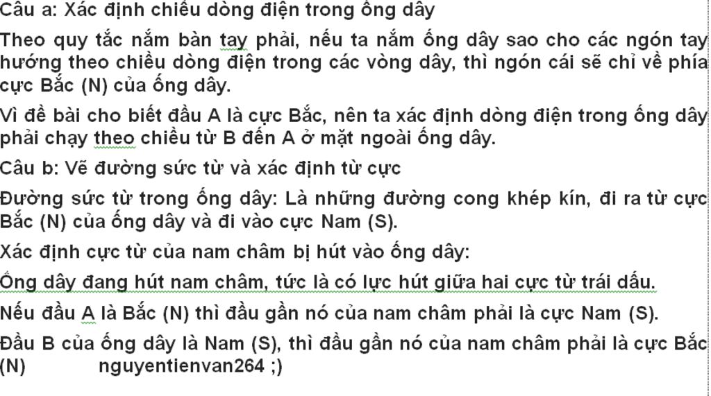 a) Xác định chiều dòng điện trong ống dây dẫn sau biết đầu A là cực từ Bắc.