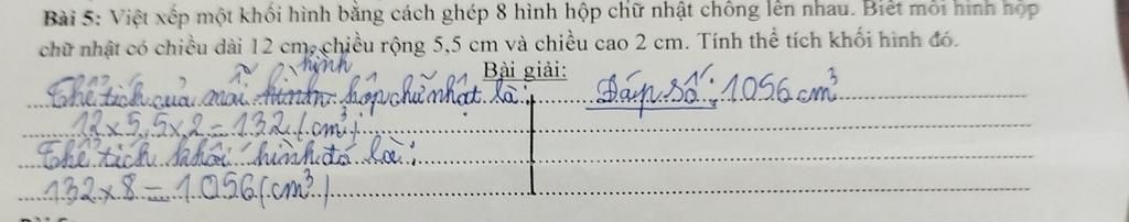 - Thể tích hình khối đó là: