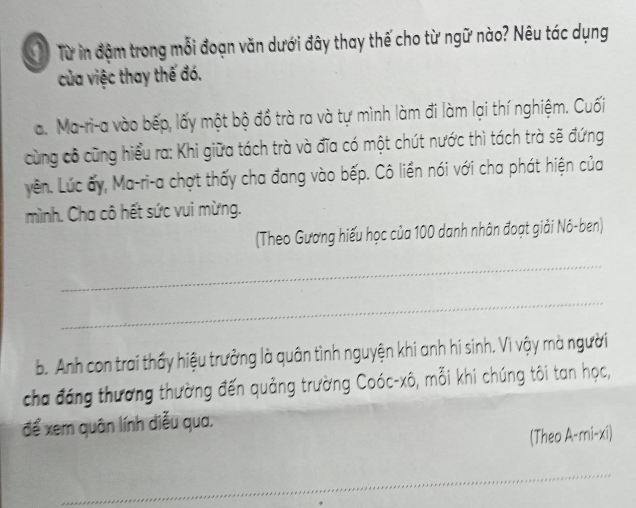 `=>` Tác dụng: thay thế cho cụm từ đã có trước đó giúp cho đoạn văn thêm linh hoạt, tránh sự lặp lại
