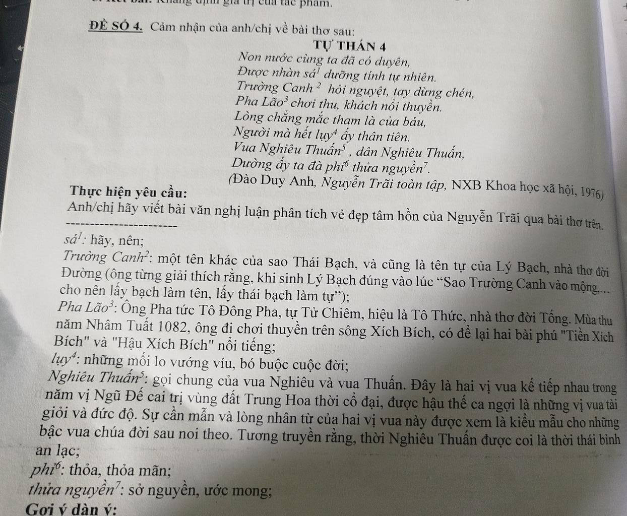 ĐỀ SỐ 4. Cảm nhận của anh/chị về bài thơ sau: