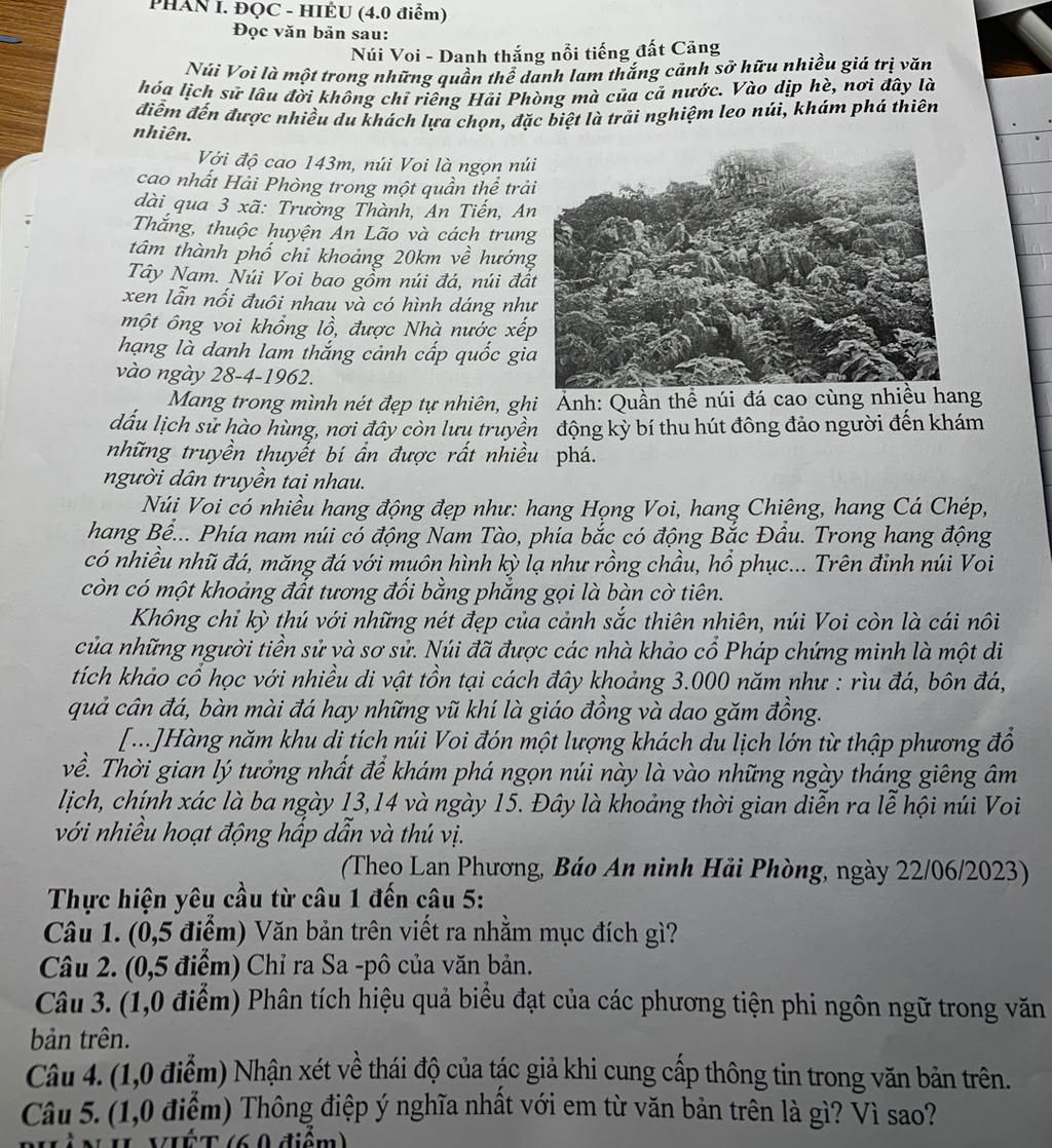 - Văn bản trên nhằm giới thiệu, quảng bá về danh lam thắng cảnh núi Voi – một địa điểm du lịch nổi bật, giàu giá trị văn hóa, lịch sử và tự nhiên của Hải Phòng.