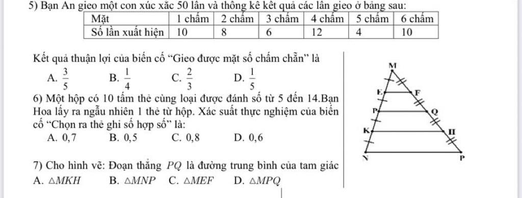 Các mặt `2,4,6` chẫm là các mặt số chấm chẵn