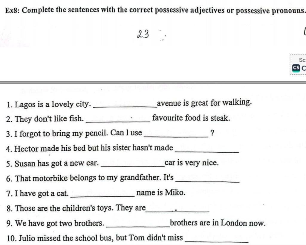 `*` Đại từ nhân xưng `->` Tân ngữ `->` Tính từ sở hữu `->` Đại từ sở hữu