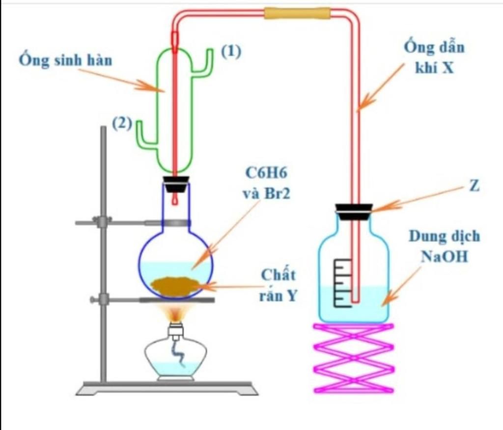 Ống sinh hàn có tác dụng làm lạnh để các chất (ở trạng thái lỏng trong điều kiện thường) đang hóa hơi, đi ngang qua ống sẽ ngưng tụ và quay trở lại bình cầu thay vì thoát ra theo ống dẫn khí X. Để đảm bảo tác dụng đó của ống sinh hàn, hãy cho biết nước làm nguội đi vào ống theo đầu số (1) hay đầu số (2) trên hình vẽ. Vì sao?