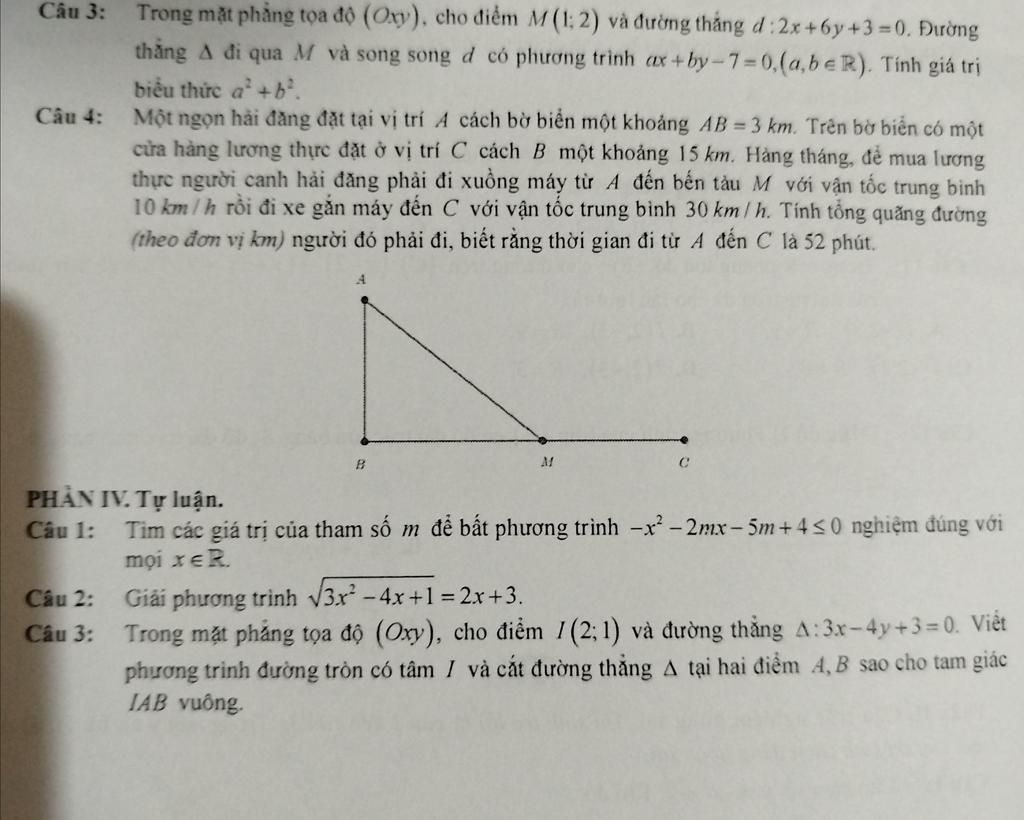 Vì $(\Delta)$ đi qua $M$ và song song với $(d)$