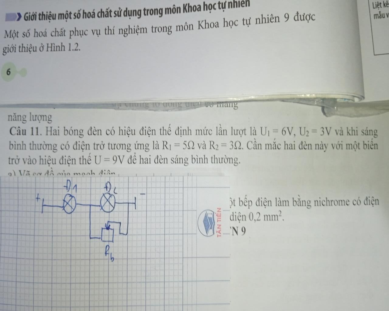 Câu 11. Hai bóng đèn có hiệu điện thế định mức lần lượt là U = 6V, U2 = 3V và khi sá ...