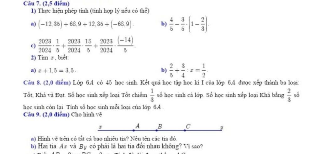 Câu 8. (2,0 điểm) Lớp 6A có 45 học sinh. Kết quả học tập học kì I của lớp 64 được xếp thà ...