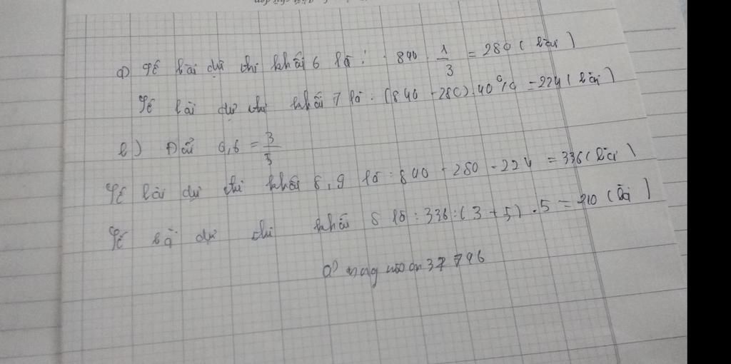 b)Biết số bài dự thi của khối 9 bằng 0,6 lần số bài thi của khối 8. Tính số bài dự thi của khối 8.