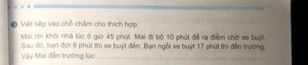 Thời gian Mai đi từ nhà đến trường đó là ` : `