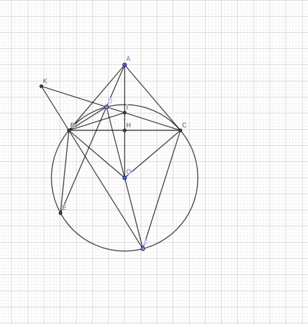 Mặt khác $AO$ là trung trực $BC\to AO\perp BC=H$ là trung điểm $BC$