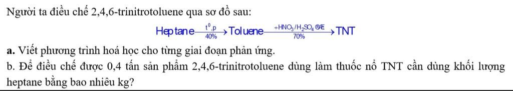 b. Để điều chế được 0,4 tấn sản phẩm 2,4,6-trinitrotoluene dùng làm thuốc nổ TNT cần dùng khối lượng