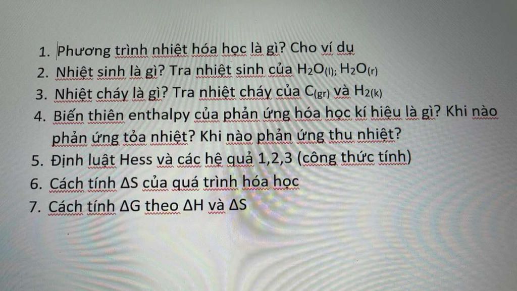 2. Nhiệt sinh là gì? Tra nhiệt sinh của H2O); H2O (r)