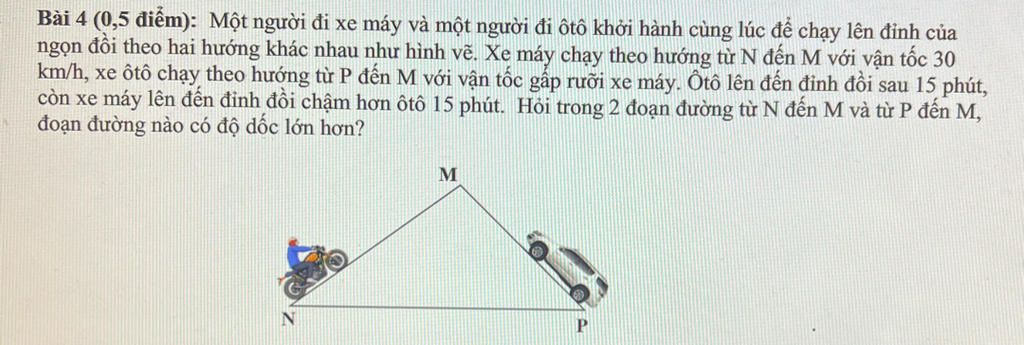 `=>` Đoạn đường `PM` có độ dốc lớn hơn đoạn đường `NM`