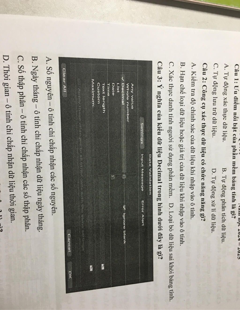Câu 2: Công cụ xác thực dữ liệu có chức năng năng gì?