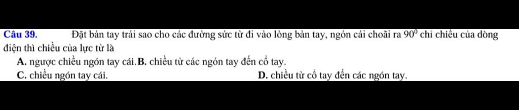 Đặt bàn tay trái sao cho các đường sức từ đâm vào lòng bàn tay.