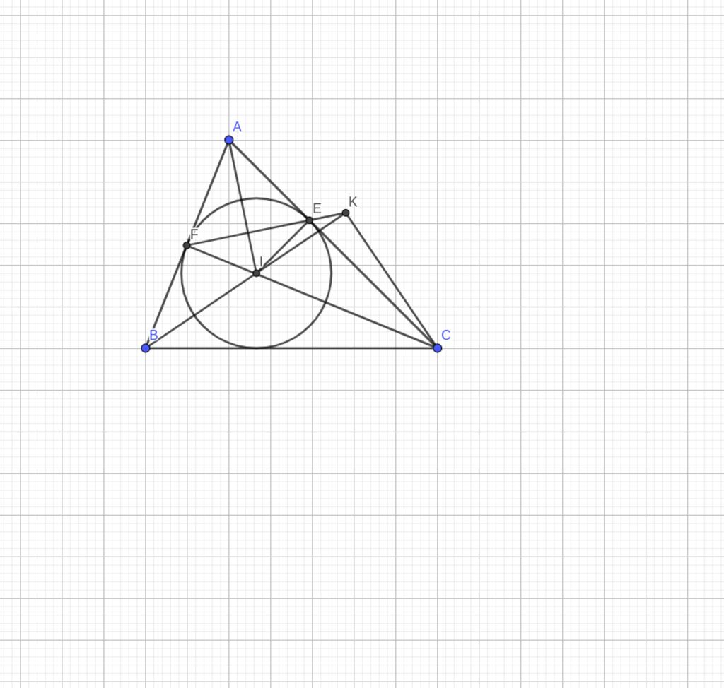 Cho đường tròn tâm / nội tiếp tam giác ABC tiếp xúc với 4B, AC lần lượt tại F và E. Ké CK vuông góc với BI. Chứng minh rắng: