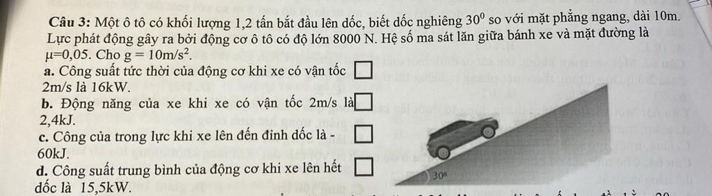 Công của trọng lực khi xe lên đến đỉnh dốc là: