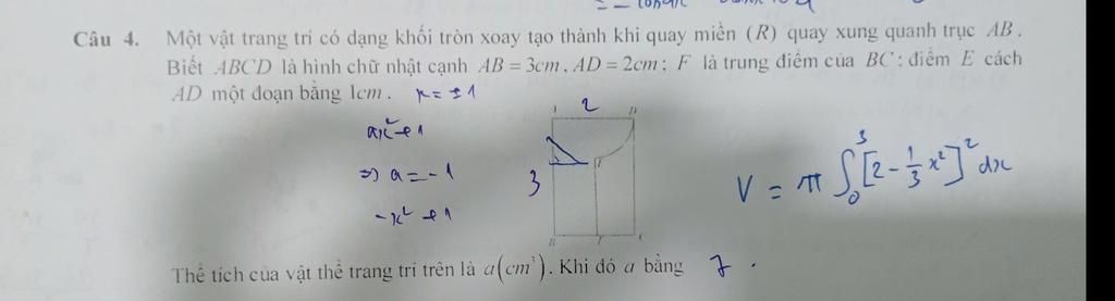 Thể tích của vật thể là: