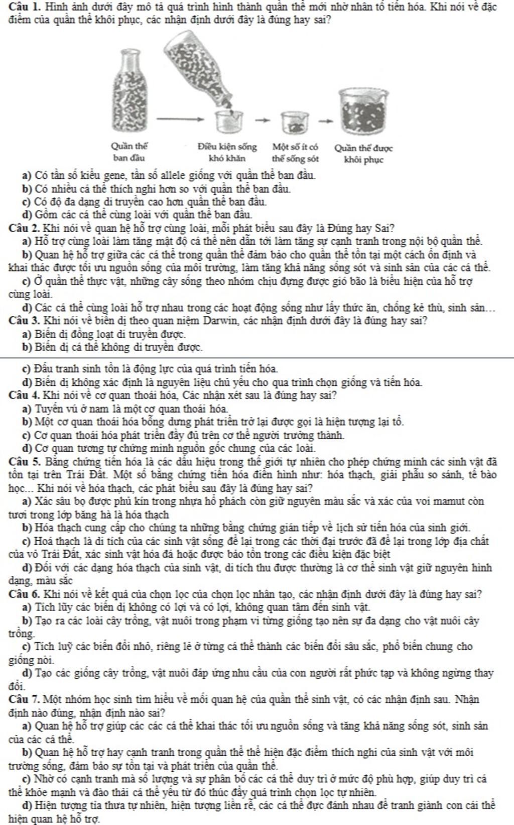 Câu 1. Hình ảnh dưới đây mô tả quá trình hình thành quần thể mới nhờ nhân tố tiến hóa. Khi nói về đặc