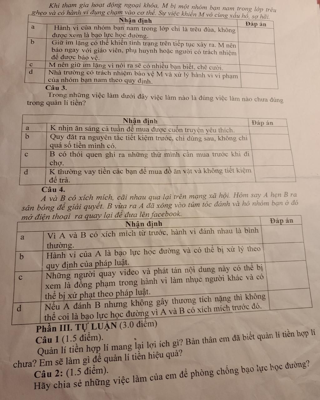 (Câu này tùy vào thực tế của em, có thể trả lời theo suy nghĩ của mình)