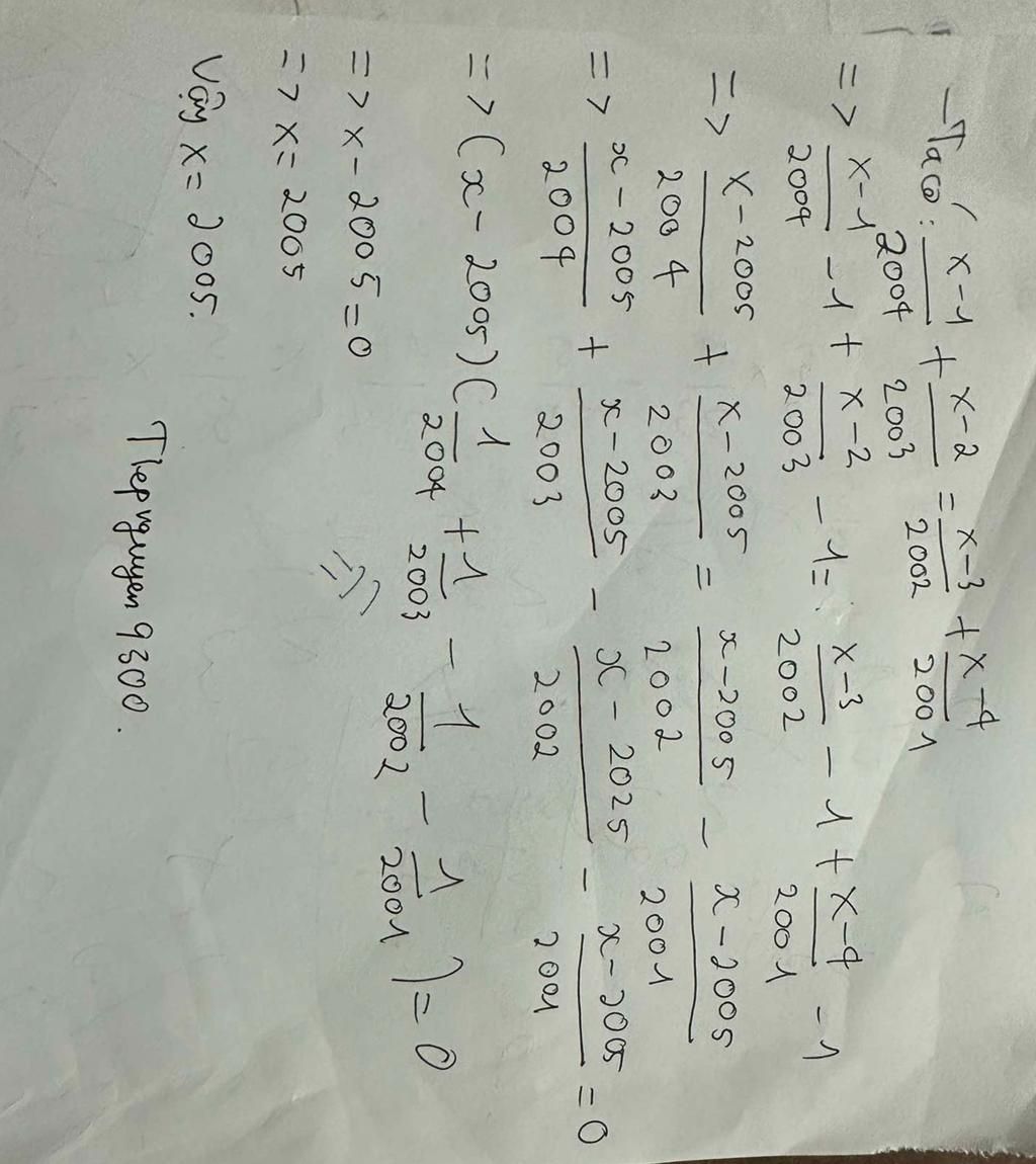 `(x-2005)/2004+(x-2003)/2003-(x-2005)/2002-(x-2005)/2001=0`