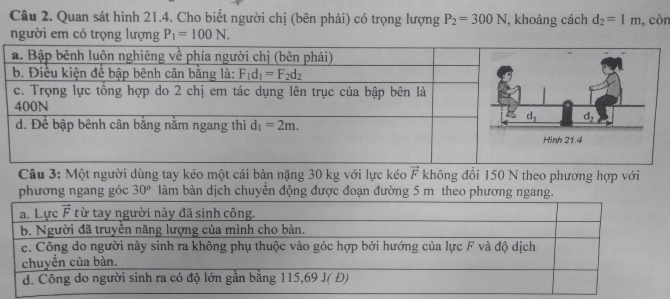 Lực kéo F của người sinh công vì làm cho bàn chuyển động