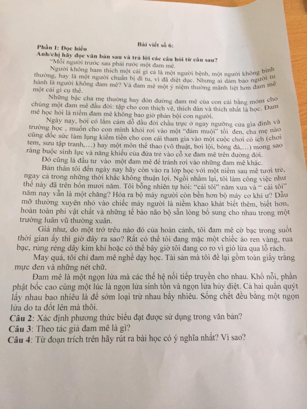 Anh/chị hãy đọc văn bản sau và trả lời các câu hỏi từ câu sau?