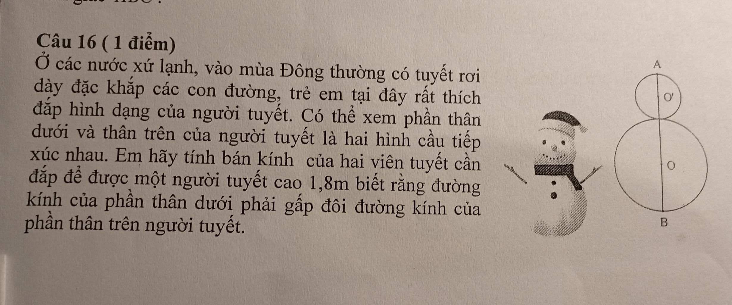 Đáp án: Viên tuyết lớn: $0.6$ m, viên tuyết nhỏ: $0.3$ m