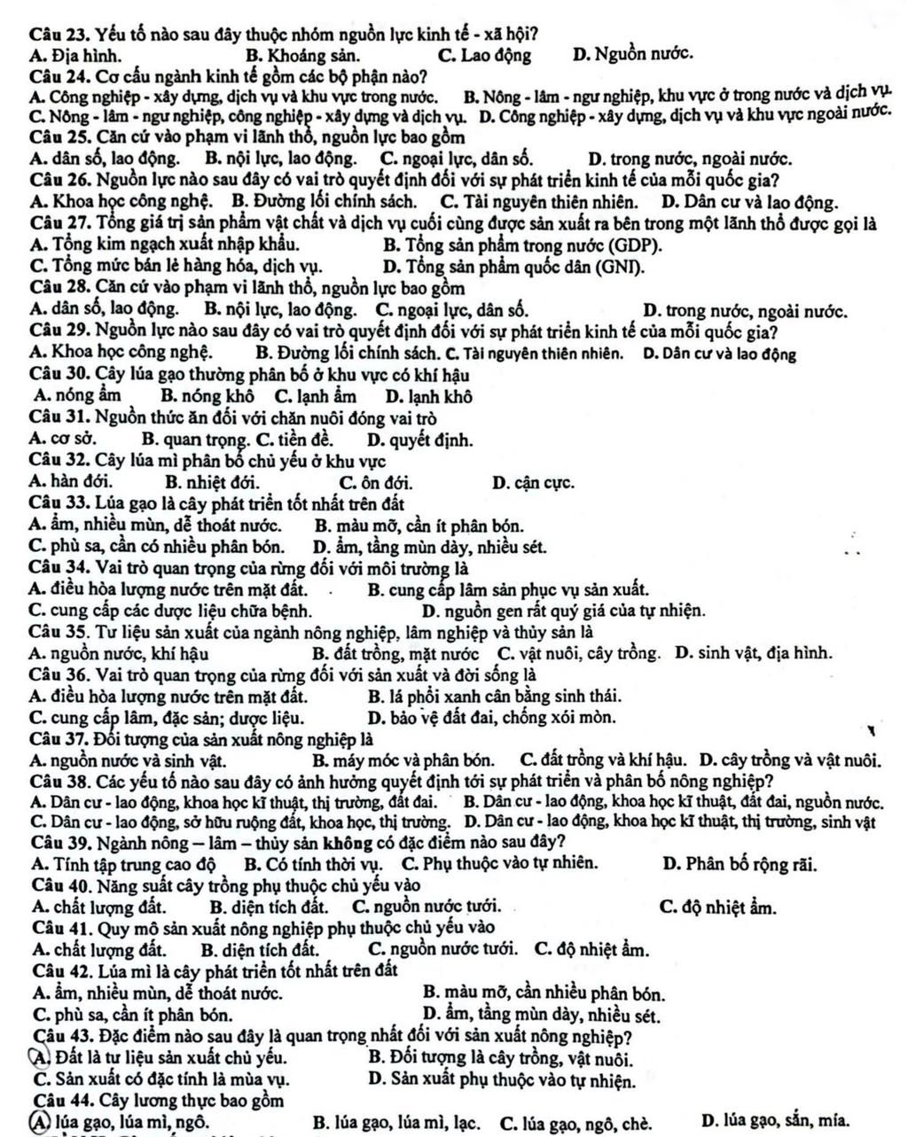 Câu 44. A → Đây là 3 loại cây lương thực chủ lực của thế giới, cung cấp phần lớn lương thực cho con người.