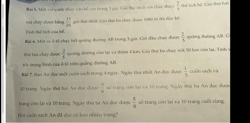 Bài 5. Một vòi nước chảy vào bể cạn trong 3 giờ. Giò thủ nhất vòi chạy được 5
