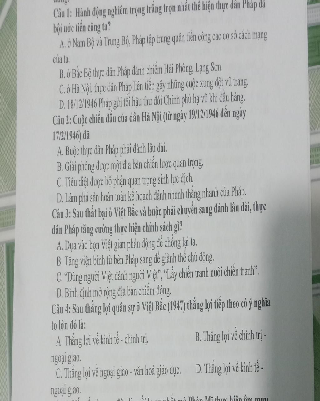 Câu 4B thắng lợi về chính trị - ngoại giao.