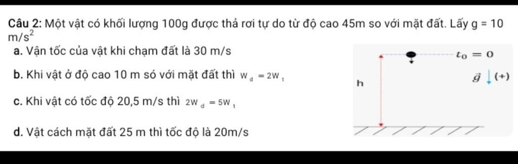 Tại độ cao `h_1 (m)` thì `W_đ = 2 W_t`