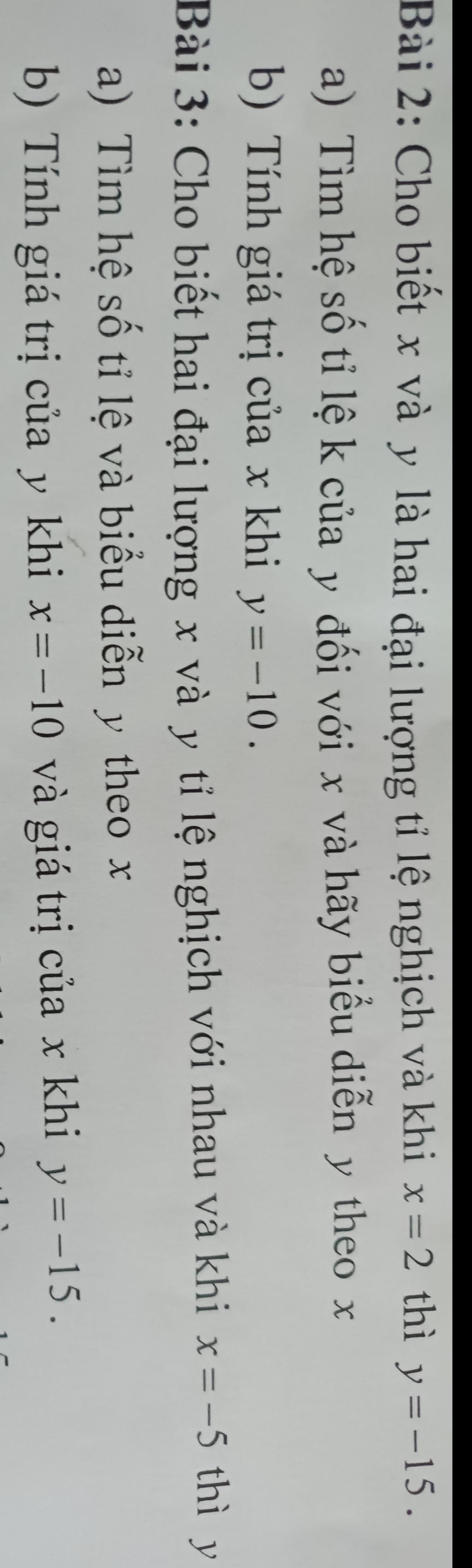 Ta có `x` tỉ lệ nghịch với `y` và `x=2;y=-15`